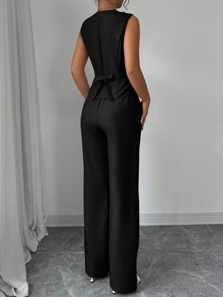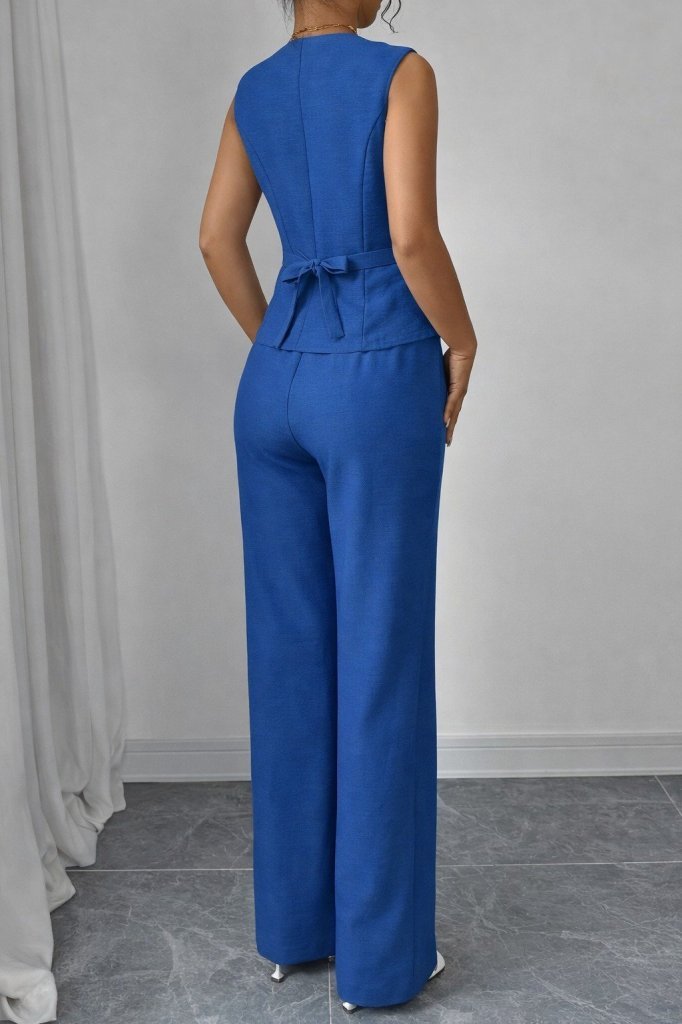 Kadın Askılı önden Düğmeli Bluz Ve Pantolon Keten Ikili Takım