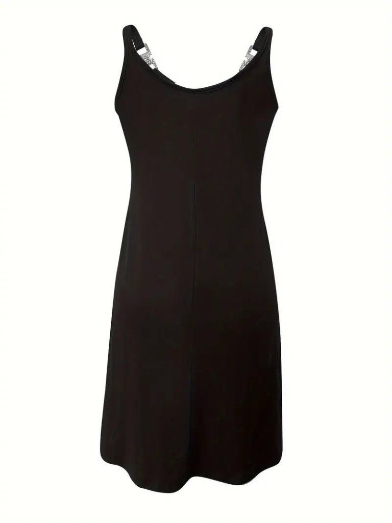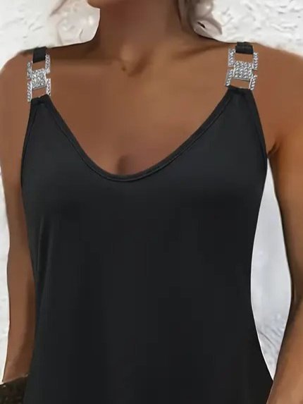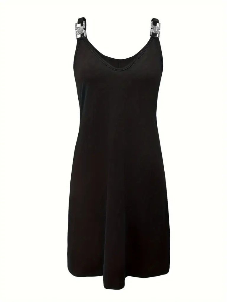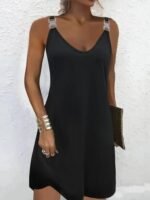 Kadın Askılı V Yakalı Toka Detaylı Janjan Krep Elbise