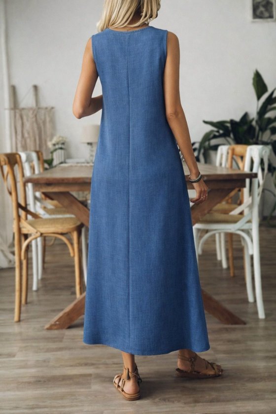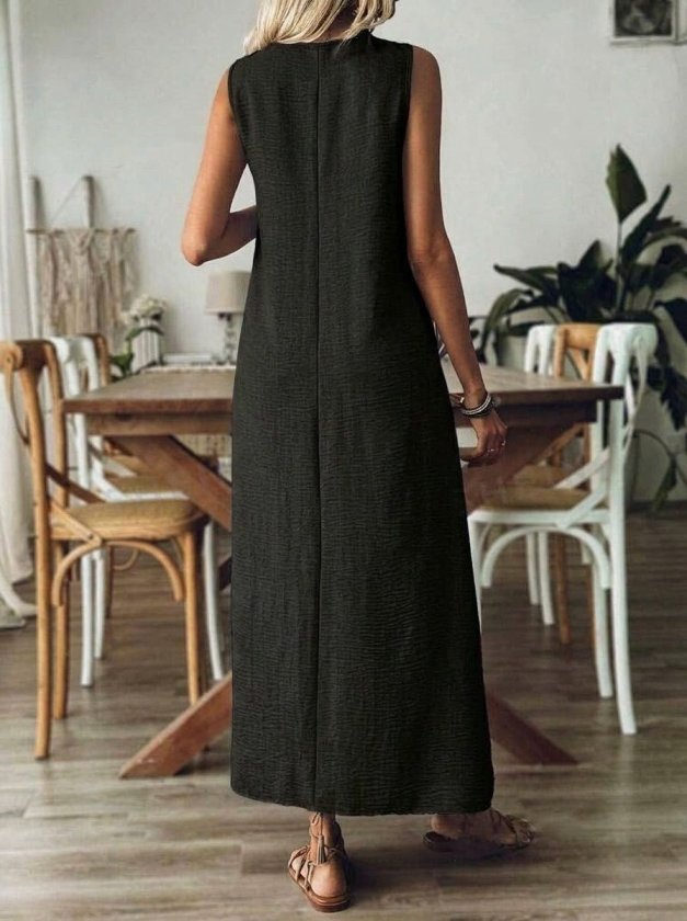 Kadın Kolsuz Boyundan Askılı Desenli Midi Süprem Elbise
