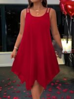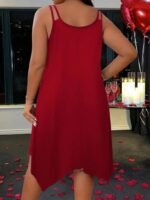 Kadın Askılı Yuvarlak Asimetrik Kesim Detaylı Viskon Elbise