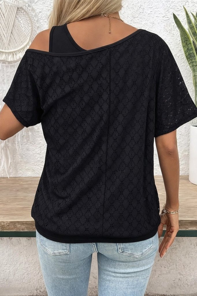 Kadın Askılı Yuvarlak Yaka Viskon Atlet Ve Yarasa Kollu Omuzdan Açık Dantel Bluz Ikili Takım