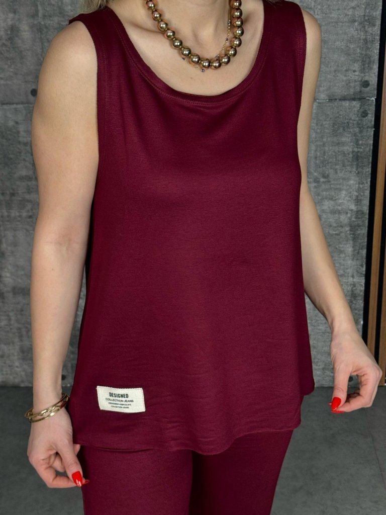 Kadın Askılı Yuvarlak Yaka Viskon Iki Iplik Bluz Ve Eşofman Altı Ikili Takım