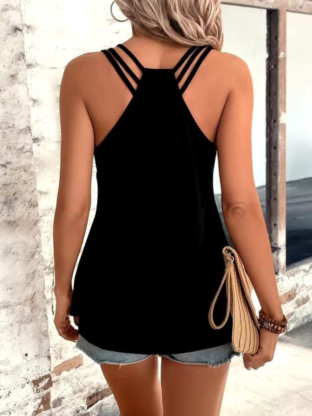 Kadın Askılı Yuvarlak Yakalı Arkası şerit Detaylı Viskon Bluz