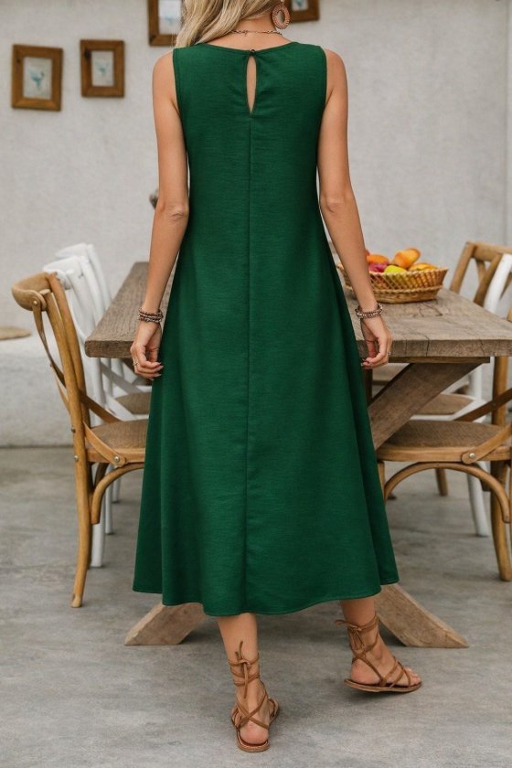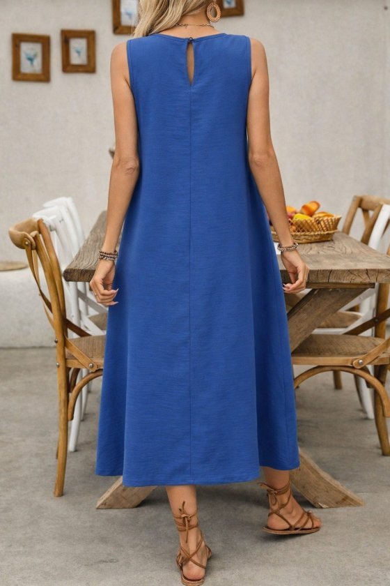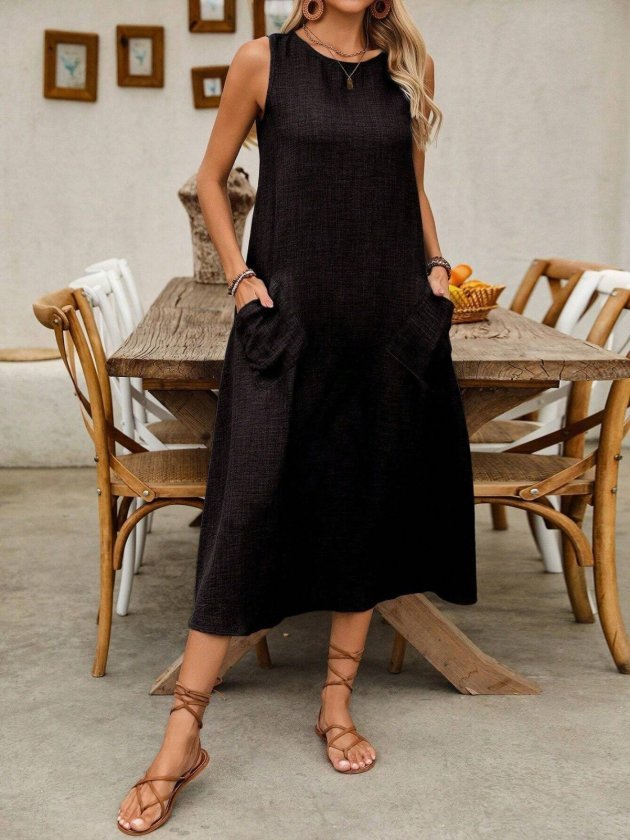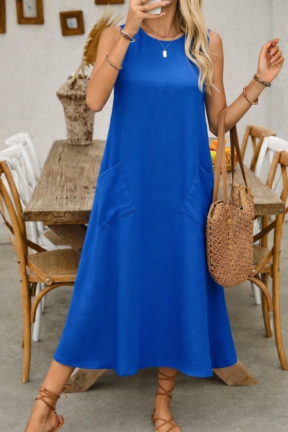 Kadın Askılı Yuvarlak Yakalı Kıloş Cepli Uzun Elbise