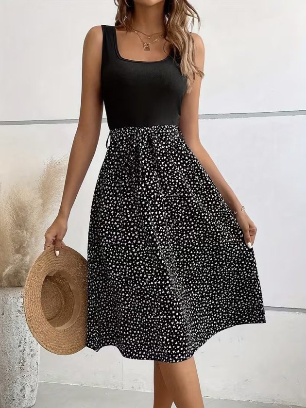 Kadın Sıfır Kol Kruvaze Yaka önden çapraz Kesim Detaylı Desenli Oysho Süprem Elbise