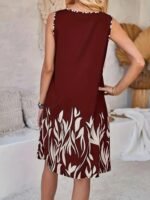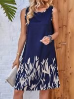 Kadın Askılı Yuvarlak Yakalı Yaprak Desenli Dalgıç Elbise