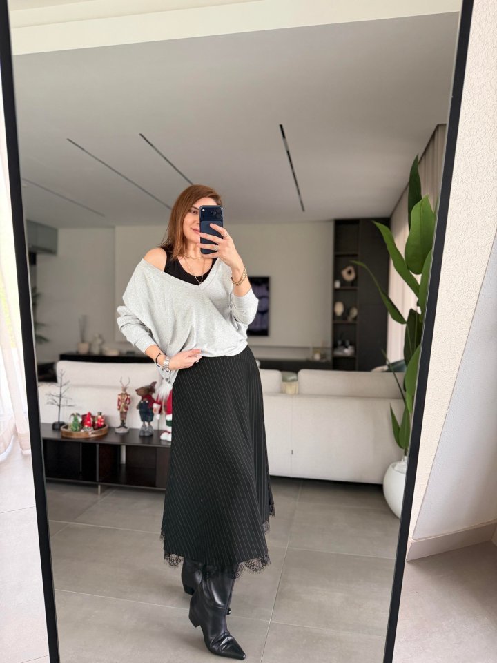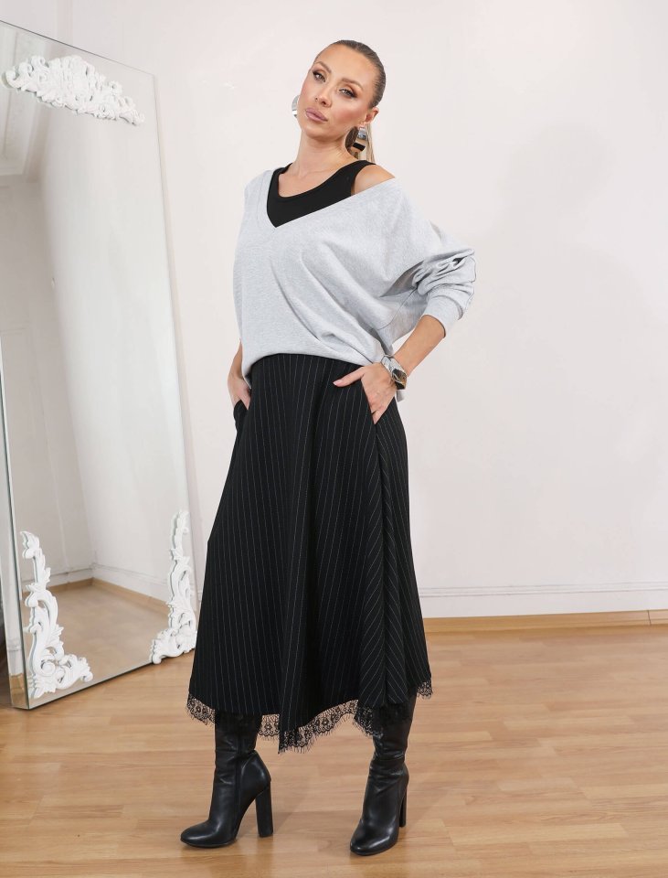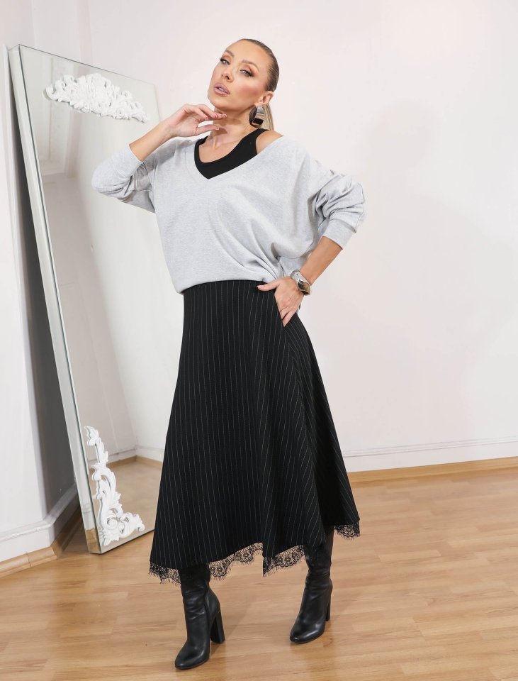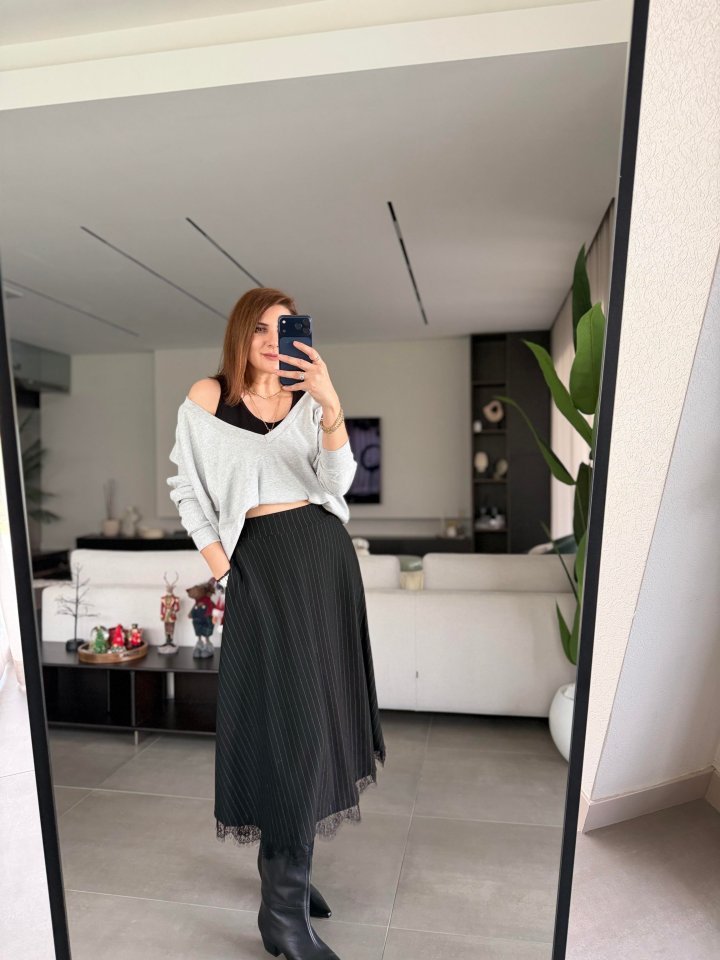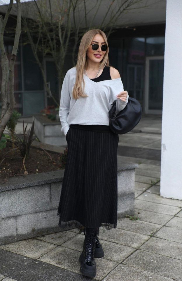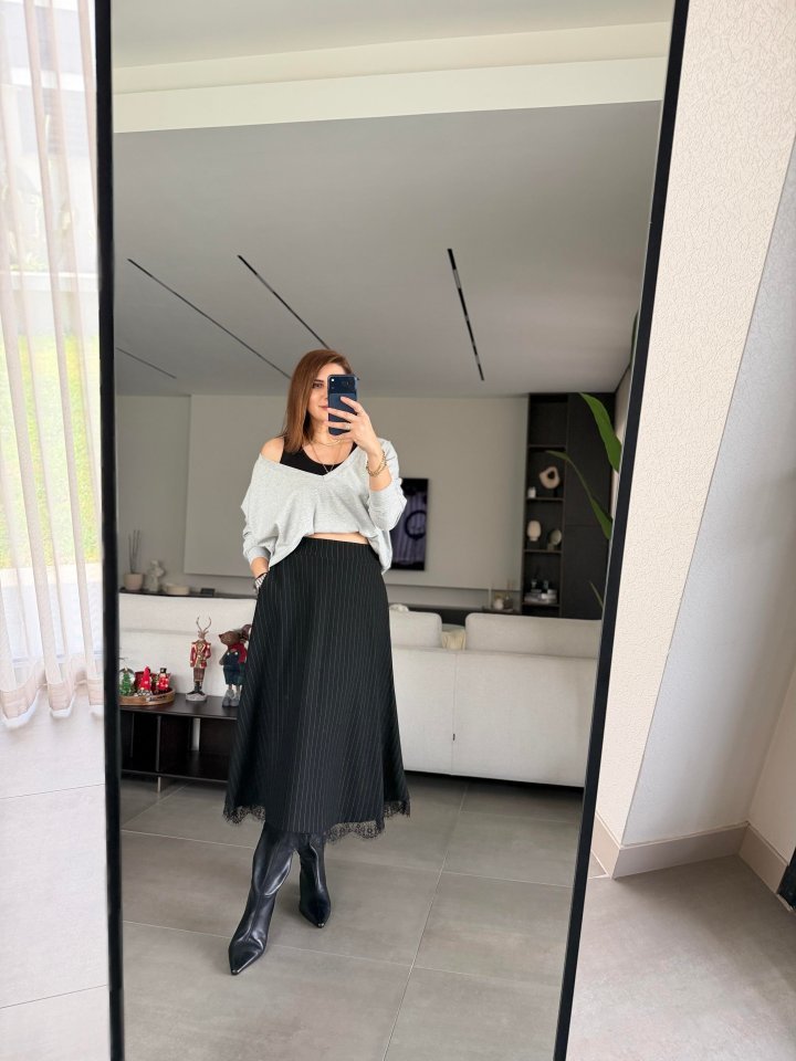 Modelin Ölçüleri: Boy:165, Kg:55, Göğüs:90, Bel:72, Kalça: 100