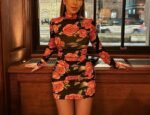 Kadın Balıkçı Yaka Gül Baskılı Fırsat ürün Mini Elbise