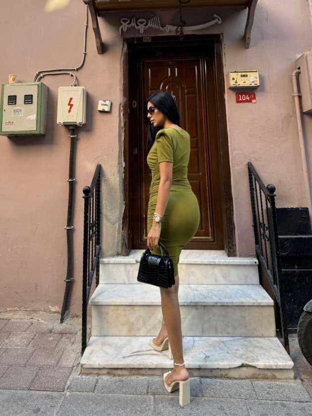 Modelin Ölçüleri: Boy:165, Kg:55, Göğüs:90, Bel:72, Kalça: 100