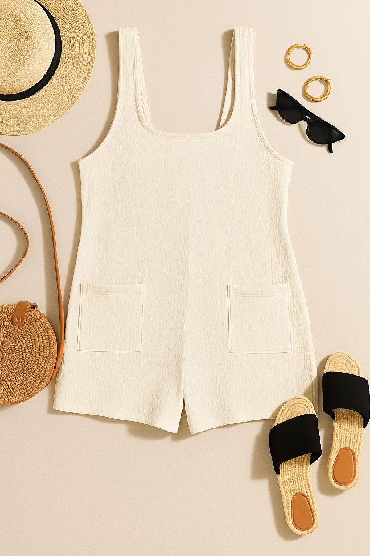 Kadın Beyaz Mini Cepli Tulum Plaj Elbisesi
