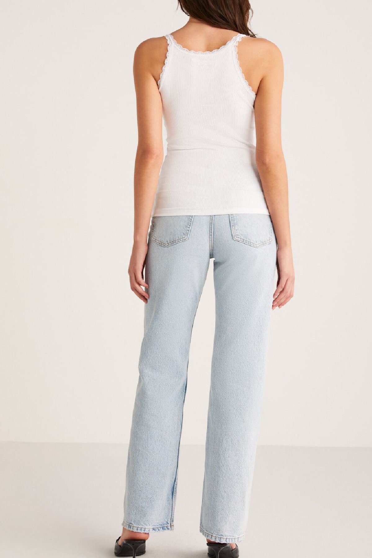 Kadın Beyaz Normal Kalıp Dantel Detalı Ince Askılı Oyuk Yaka Atlet