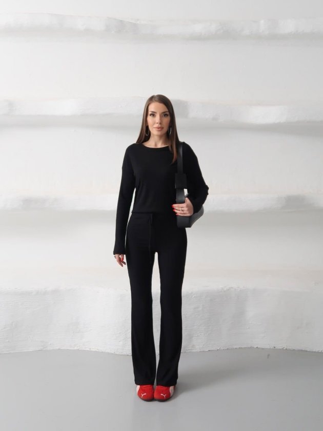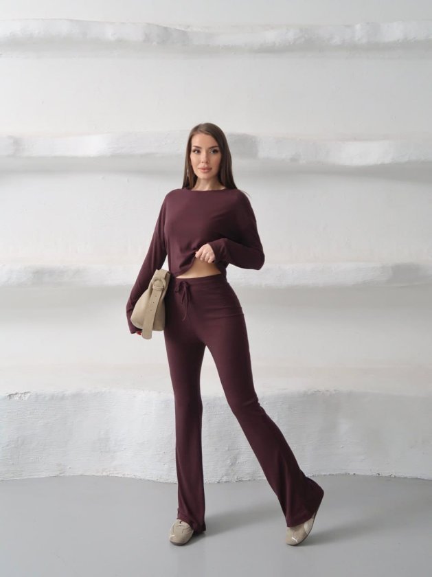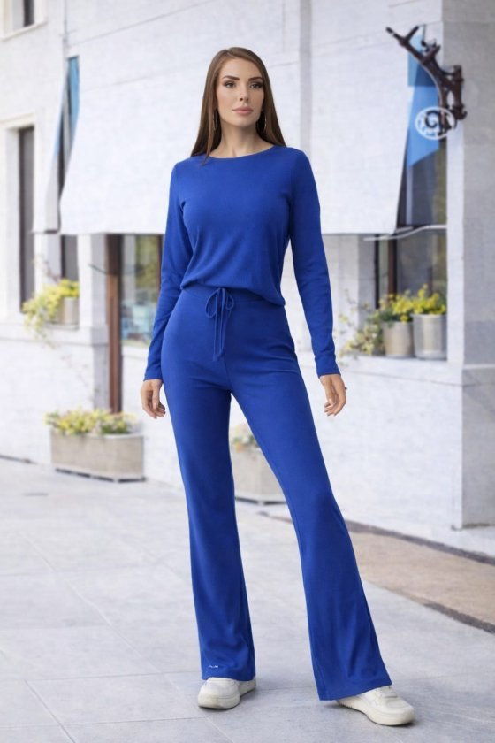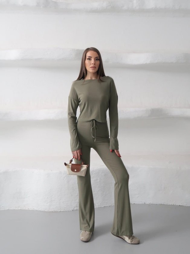 Kadın Bisiklet Yaka Crop Ve Ispanyol Paça Pantolon Ikili Takım