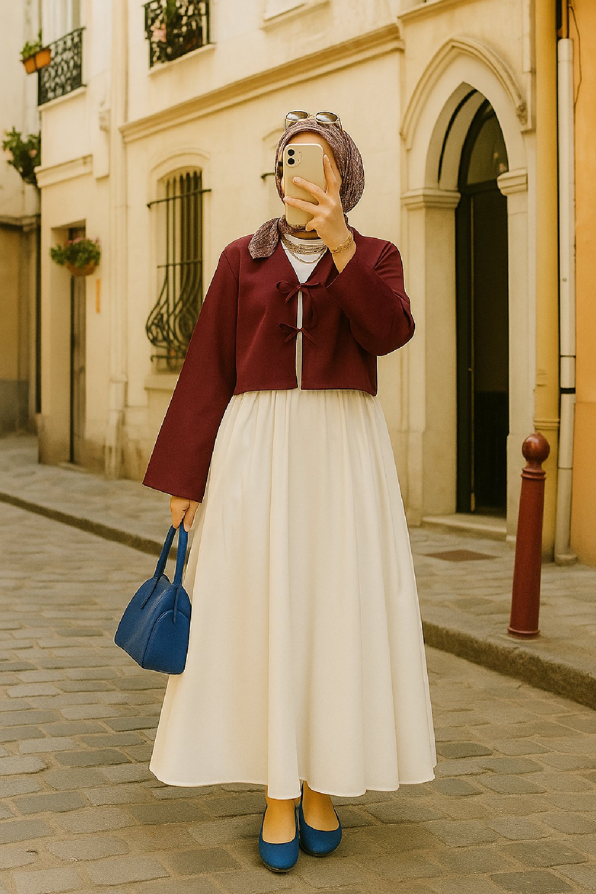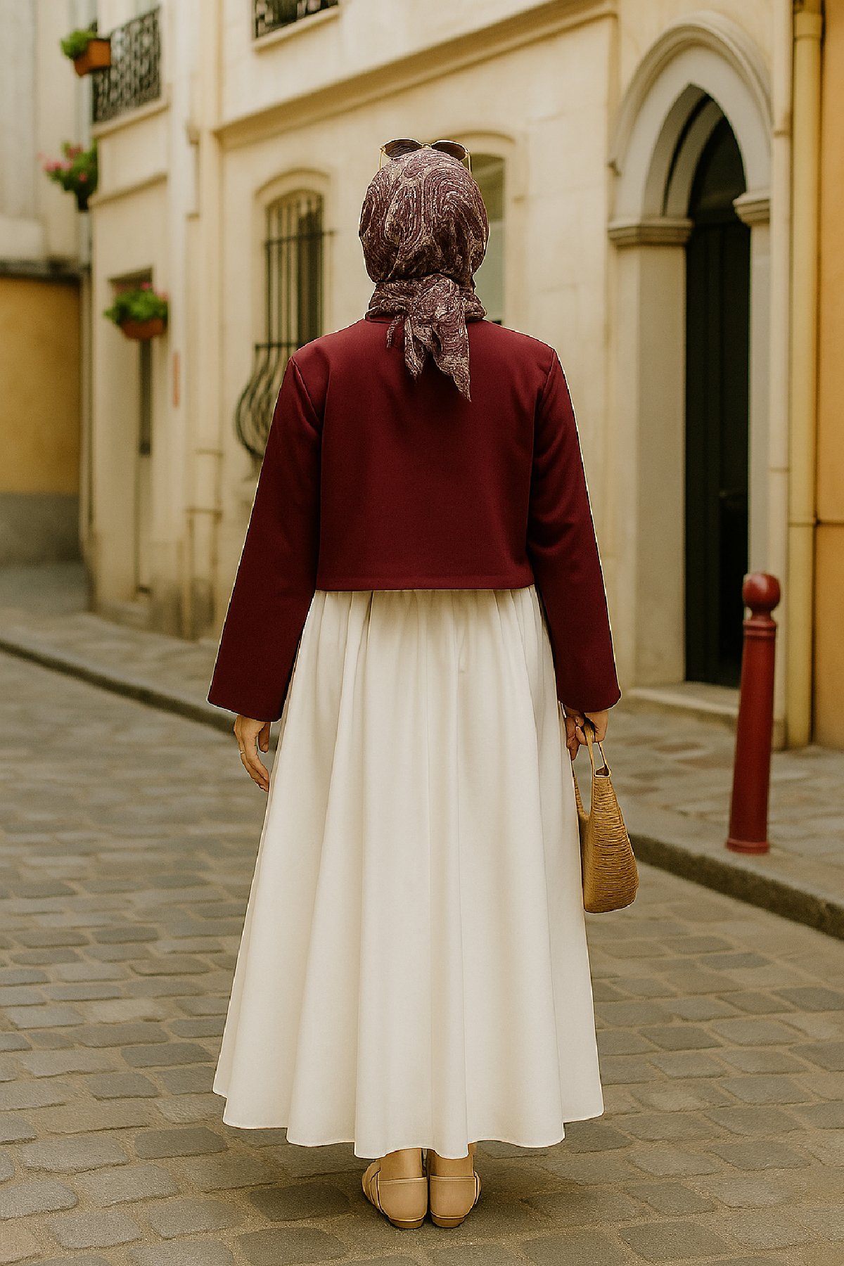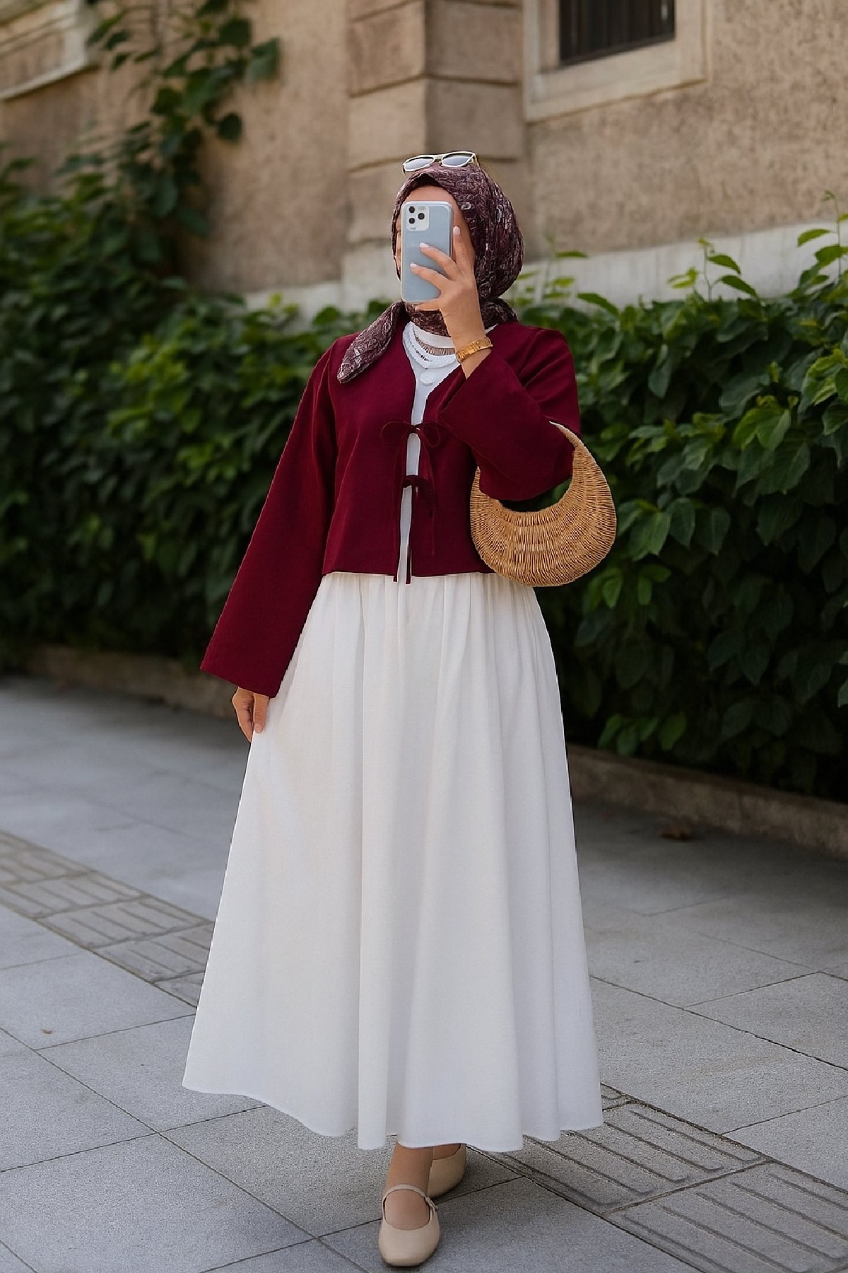 Kadın Bordo Kısa Kimono Ceket – Zarif ve Şık Kombin Parçası