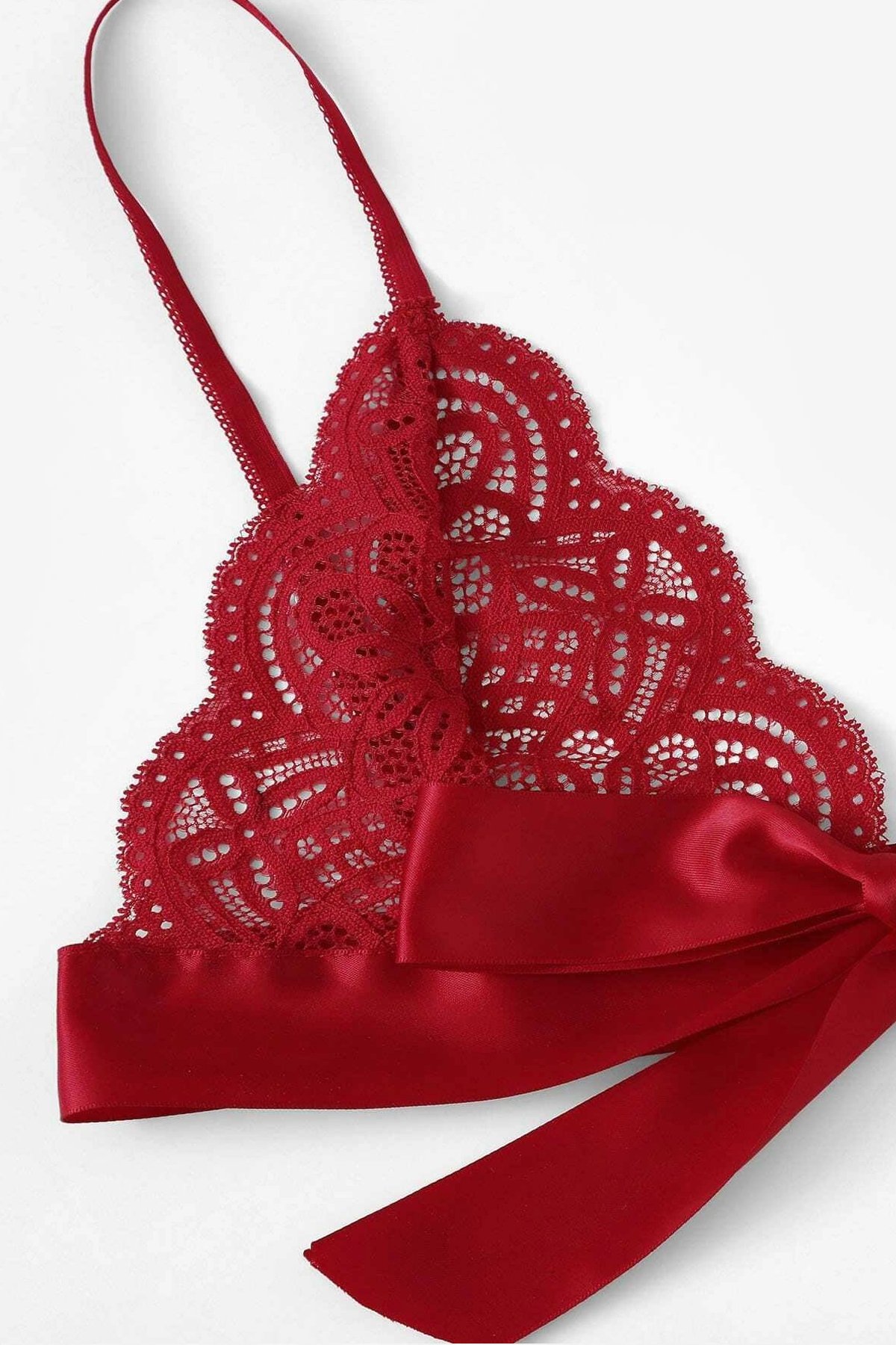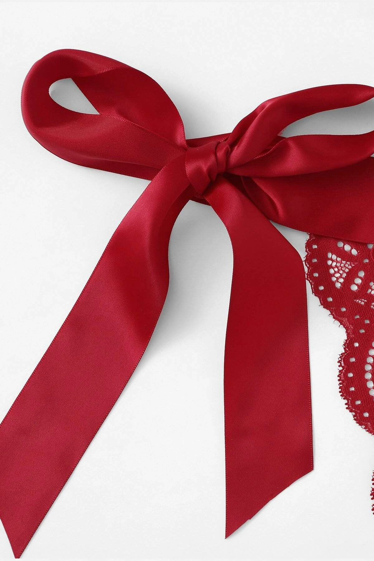 Kadın Bordo Kurdelalı Ve Dantelli Sütyen Külot Takımı