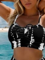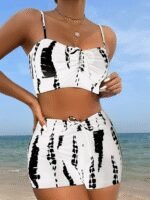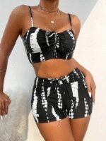 Kadın Büzgü Detay Askılı Crop Mini Tayt Ikili Takım