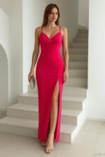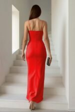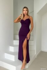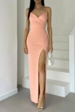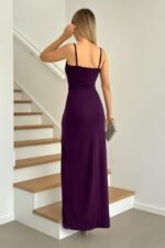 Kadın Omuz Askılı Derin Yırtmaç Detay Maxi Boy Elbise