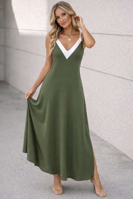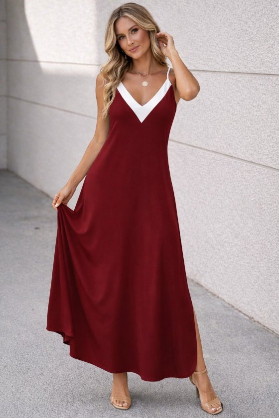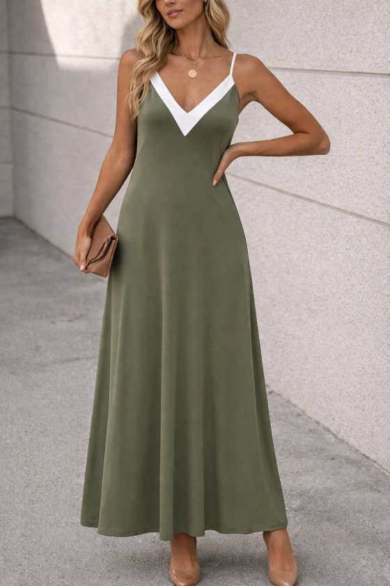 Kadın Ip Askılı Keskin V Yakalı Uzun Viskon Elbise
