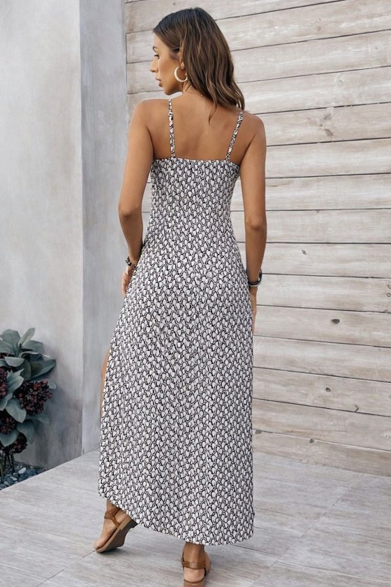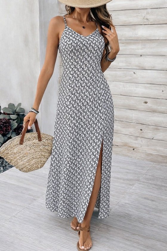 Kadın Ip Askılı V Yakalı Yırtmaçlı Uzun Süprem Elbise