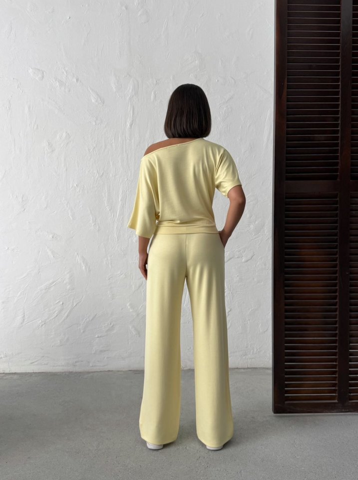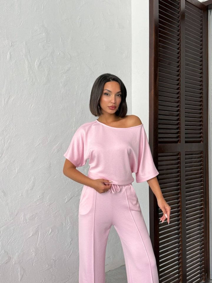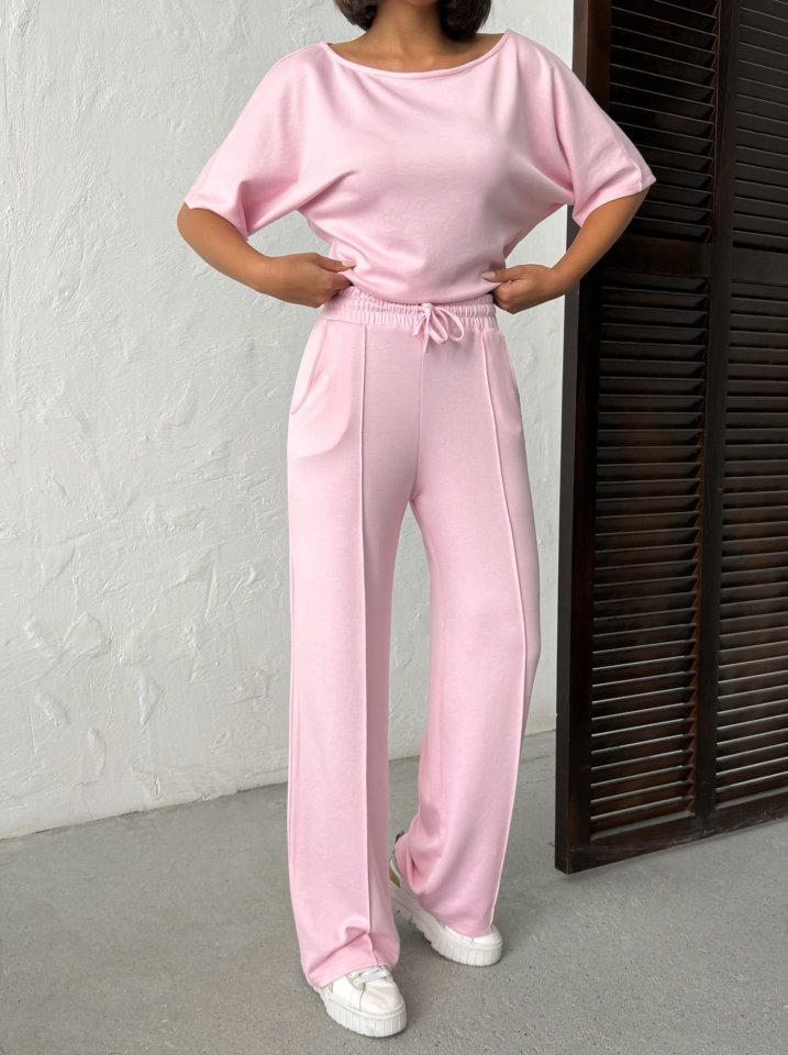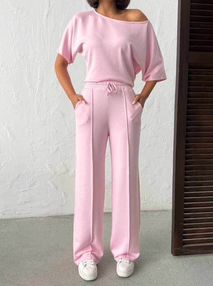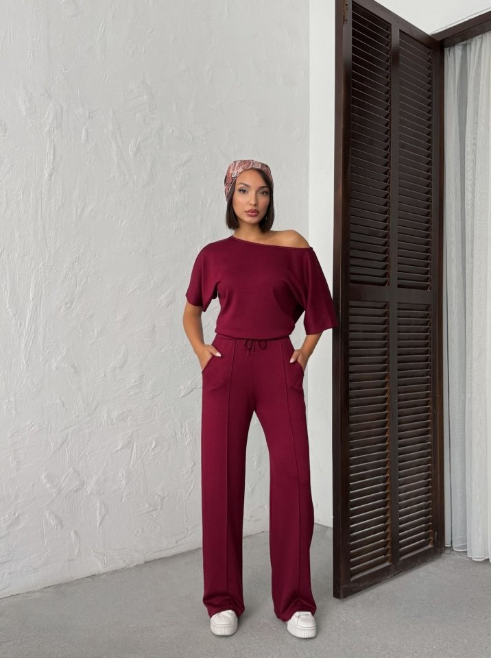 Kadın İsa Kollu Kayık Yaka Bluz Ve Pantolon Misal Kumaş Ikili Takım