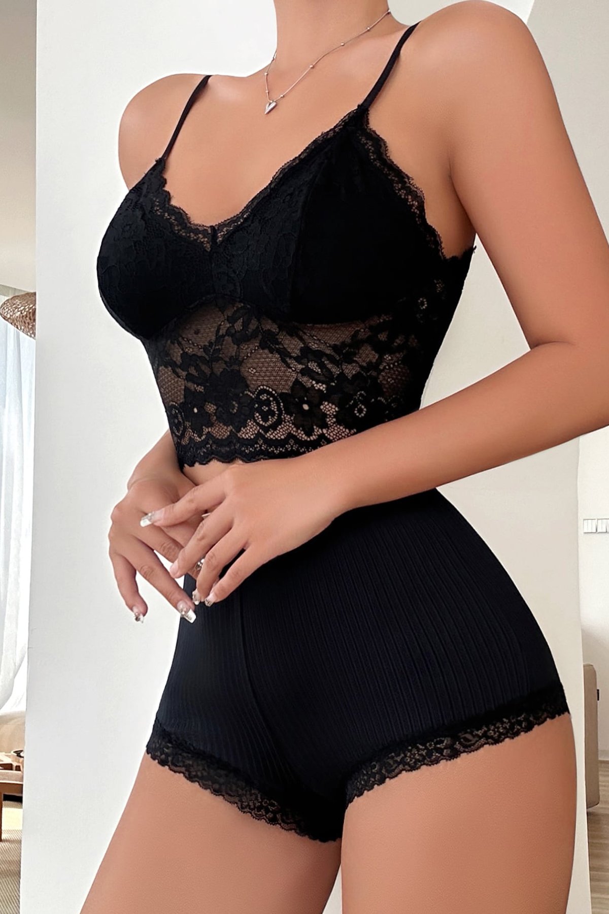 Kadın Kaşkorse Şortlu Dantelli Gecelik Takımı