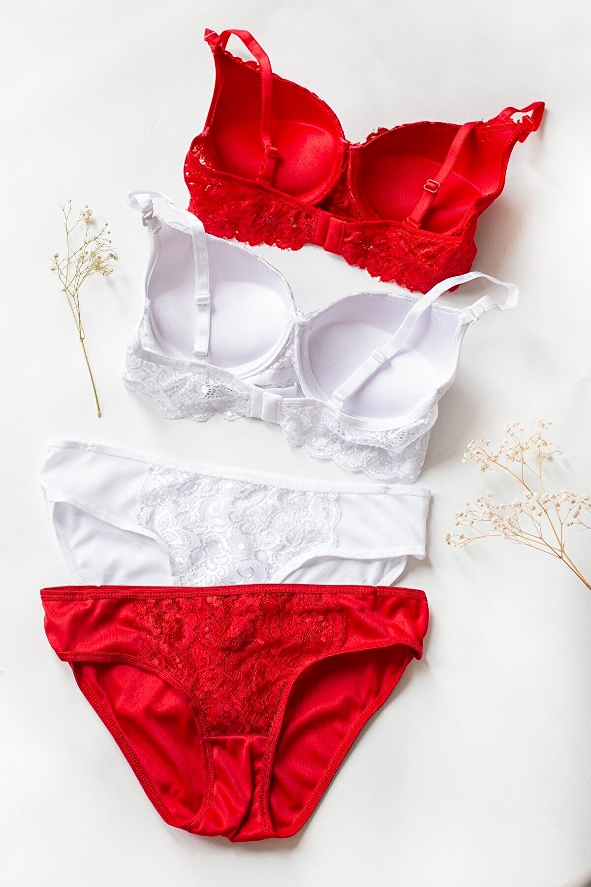 Kadın Kırmızı ve Beyaz Dolgulu Balenli Sütyen Külot 2’li Paket