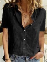 Kadın Kısa Kollu Basic Keten Gömlek