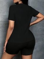 Kadın Kısa Kollu Bisiklet Yaka Köpek Baskılı Viskon Bluz