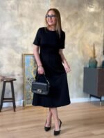 Kadın Kısa Kollu Bisiklet Yaka Midi Viskon Iki Iplik Elbise