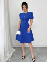 Kadın Kısa Kollu Bisiklet Yaka önden Düğmeli Ithal Krep Elbise