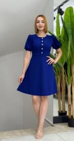 Kadın Kısa Kollu Bisiklet Yaka önden Düğmeli Ithal Krep Elbise