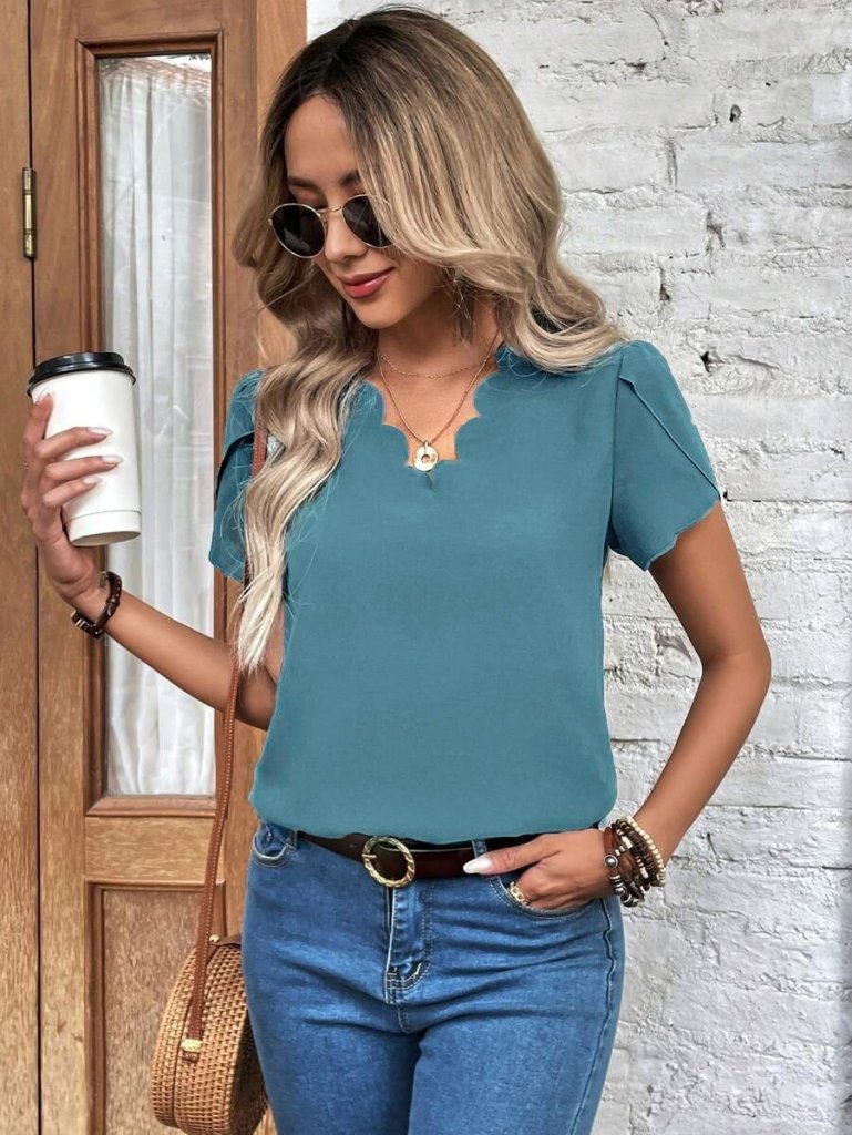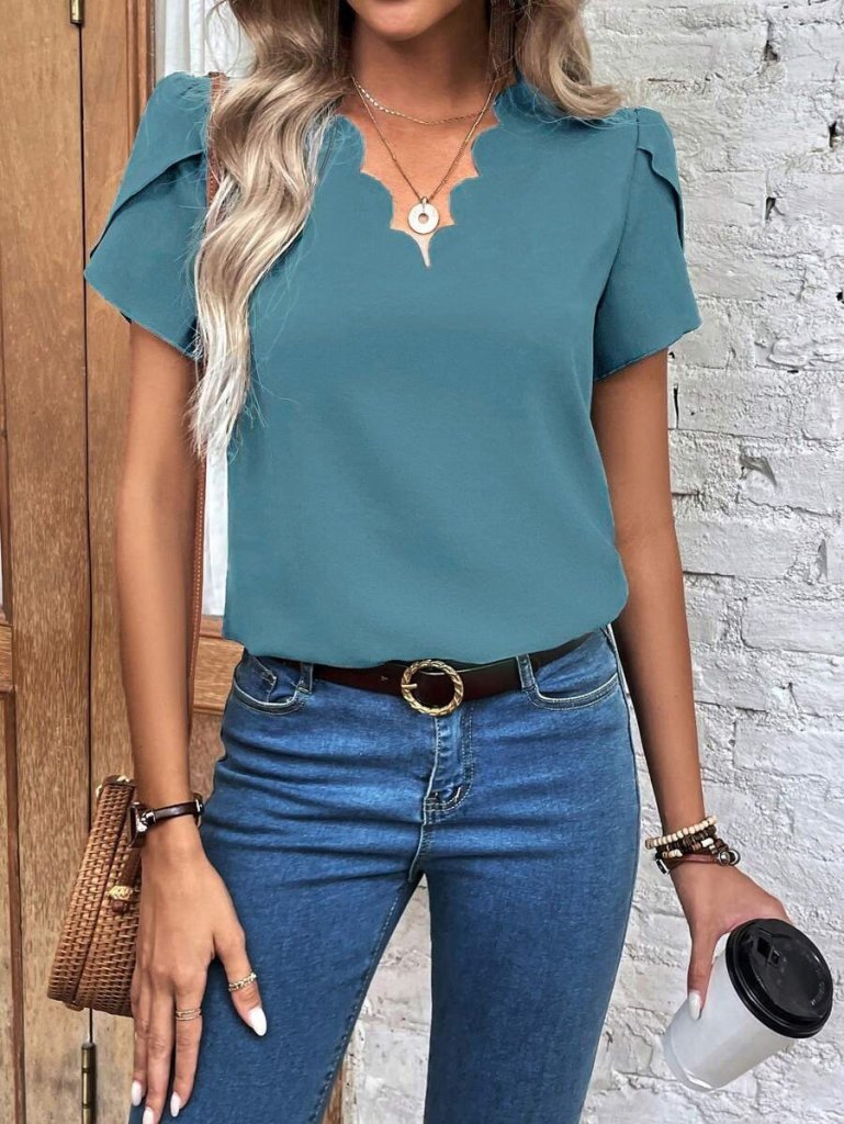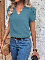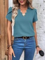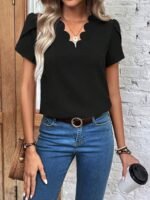 Kadın Kısa Kollu Lazer V Yakalı Ithal Krep Bluz