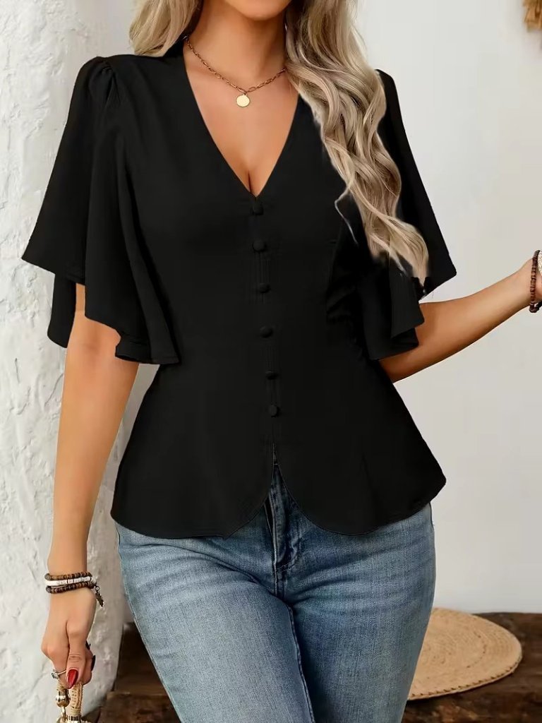 Kadın Kısa Kollu önden Düğmeli Ithal Krep Bluz