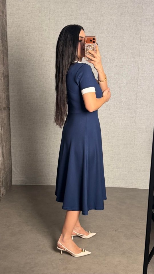 Kadın Kısa Kollu Ribana Ve Fermuar Detay Midi Boy Elbise