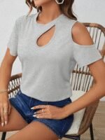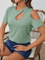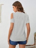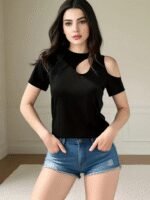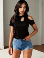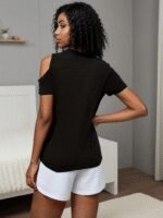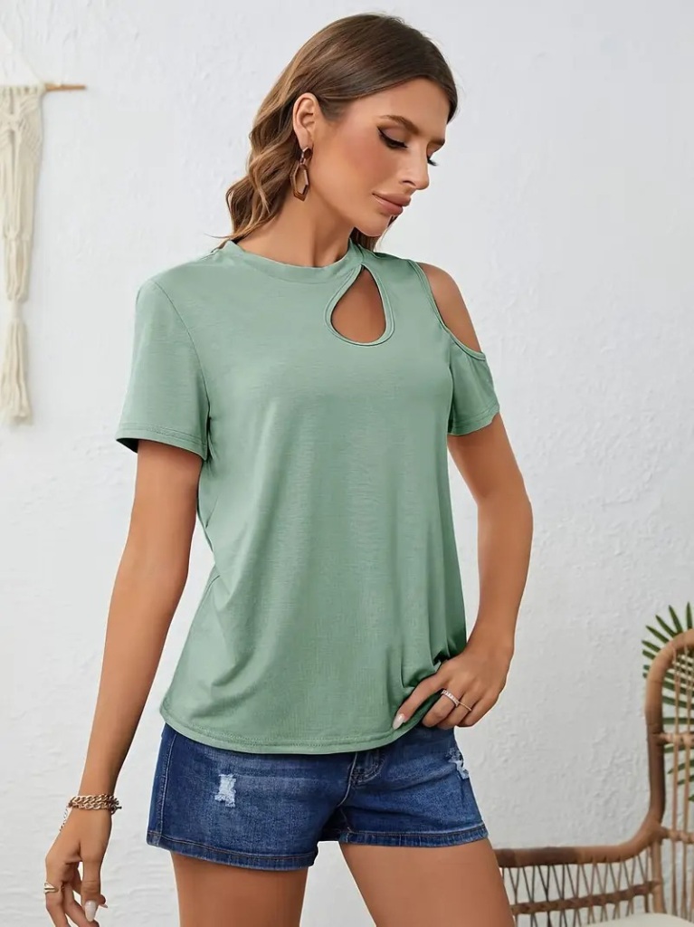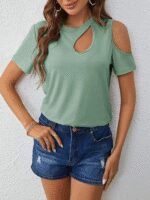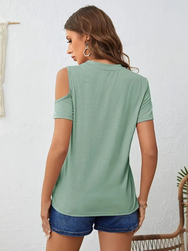 Kadın Kısa Kollu Tek Omuzu Açık Damla Detaylı Viskon Bluz