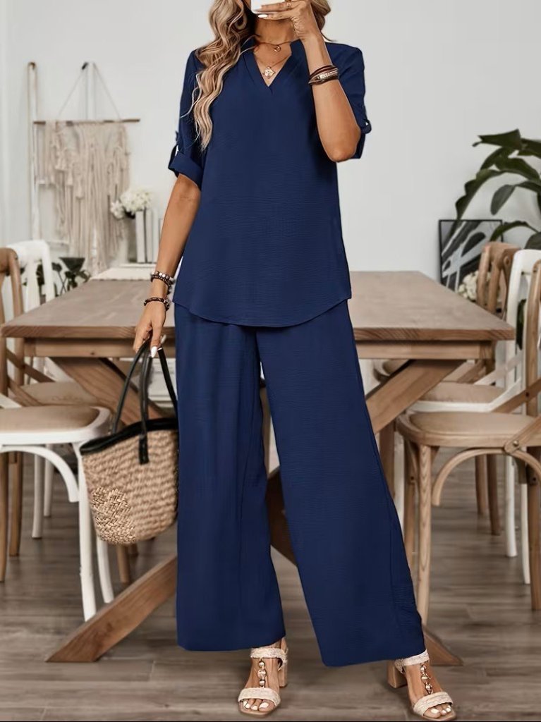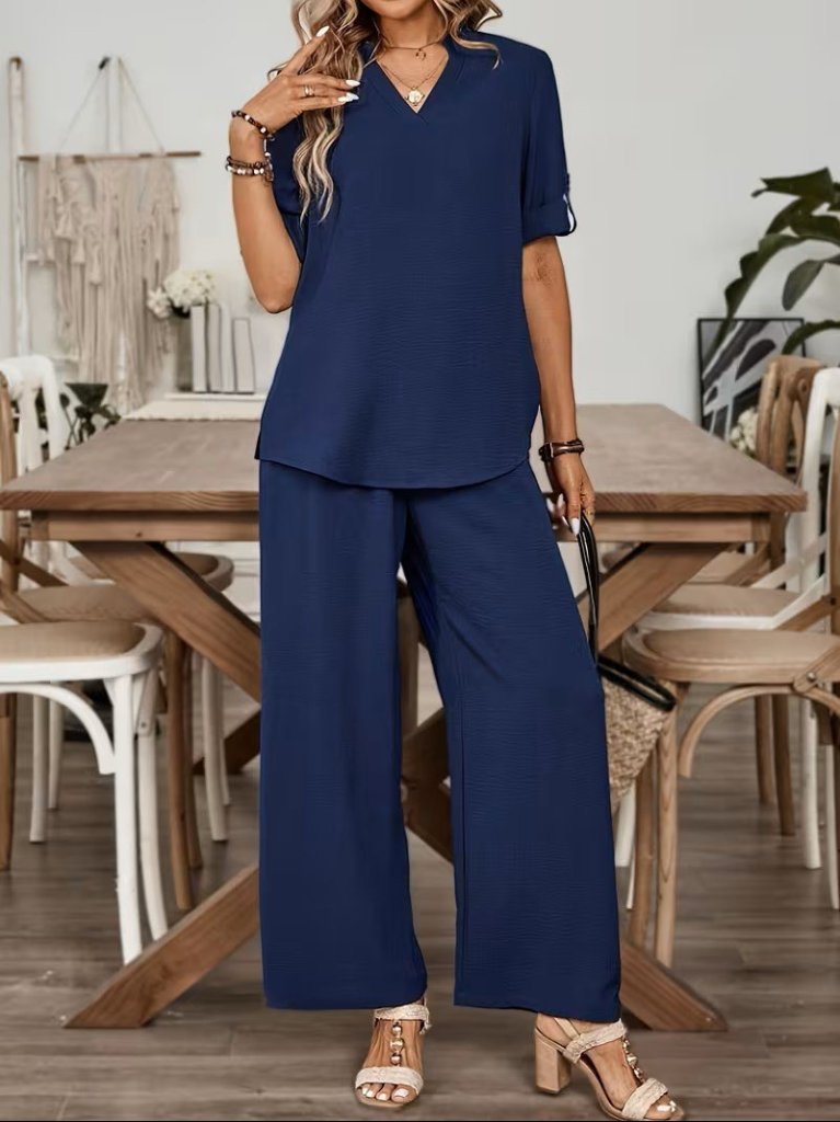 Kadın Kısa Kollu V Yakalı Aerobin Bluz Ve Pantolon Ikili Takım