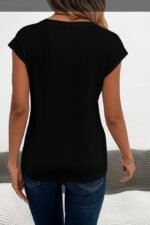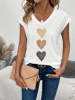 Kadın Kısa Kollu V Yakalı Kalp Desen Viskon Bluz