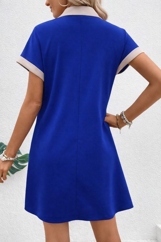 Kadın Kısa Kollu V Yakalı Onden şerit Detaylı Yakalı Kısa Janjan Krep Elbise