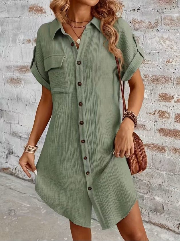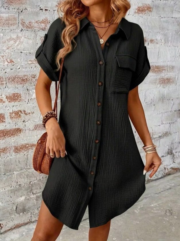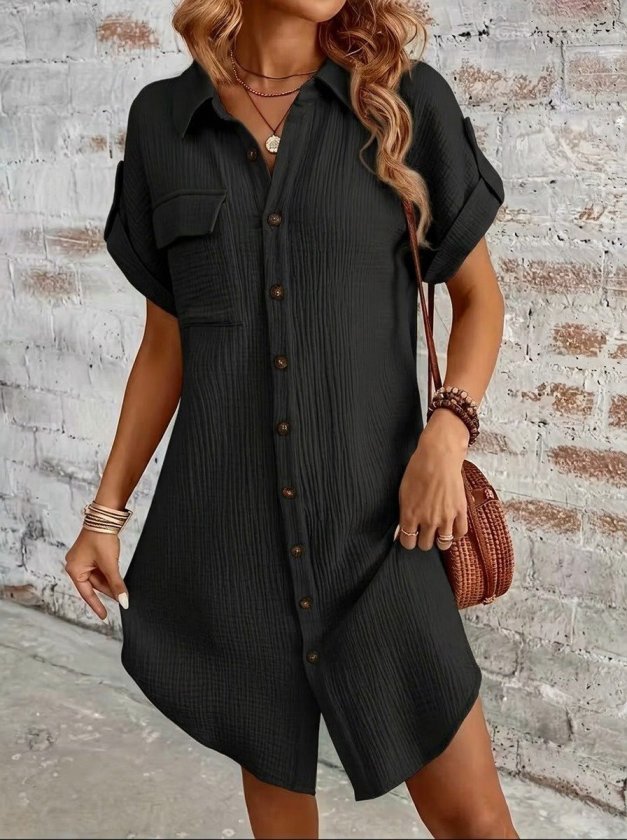 “Kadın Kısa Kollu Yakalı önden Düğmeli Bürümcük Kısa Elbise” için yorum yapan ilk kişi siz olun Yanıtı iptal et