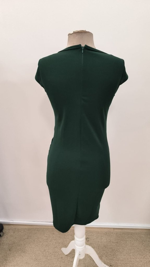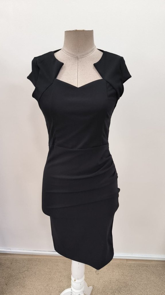 Kadın Kısa Kollu Yakası Asimetrik Kısa Ithal Krep Elbise