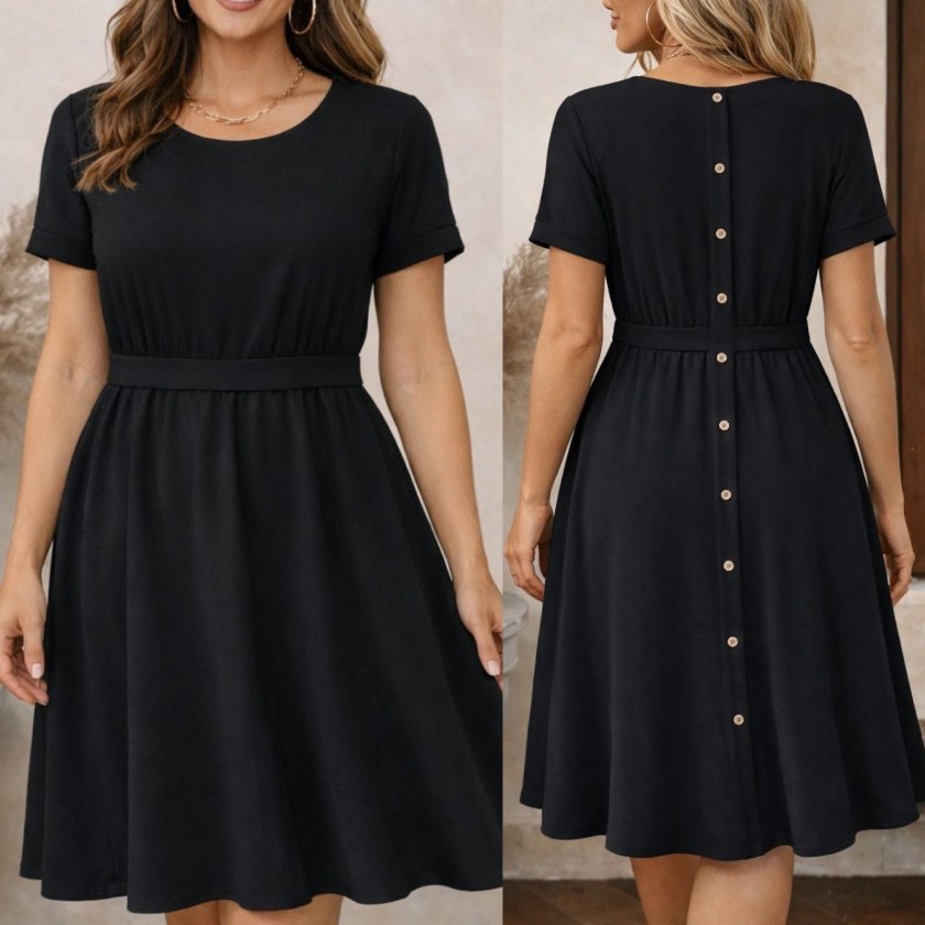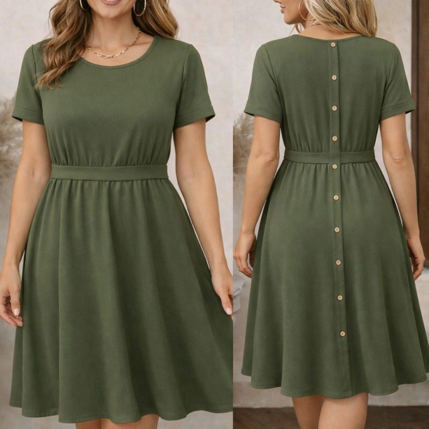 “Kadın Kısa Kollu Yuvarlak Yaka Arkadan Düğmeli Viskon Midi Elbise” için yorum yapan ilk kişi siz olun Yanıtı iptal et