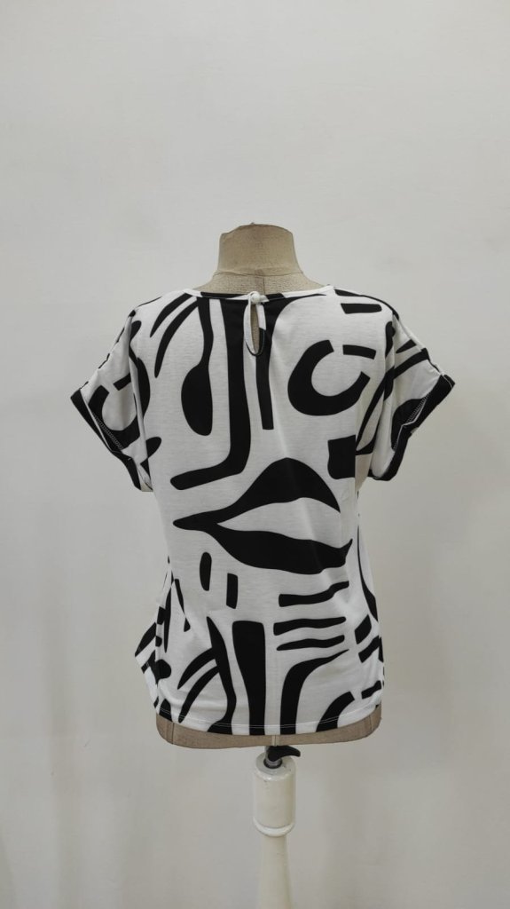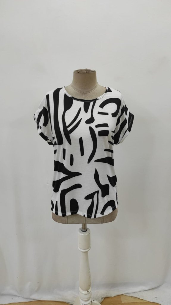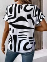 Kadın Kısa Kollu Yuvarlak Yaka Desenli Süprem Bluz