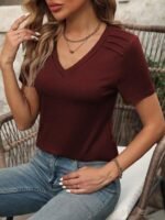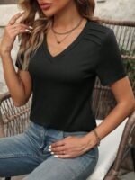 Kadın Kollu V Yakalı Omuzlarda çizgi Detaylı Viskon Bluz
