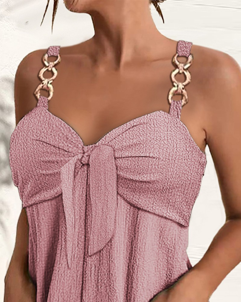 Kadın Kolsuz Askı Aksesuarlı önü Bağlama Detay Salopet şort Tulum