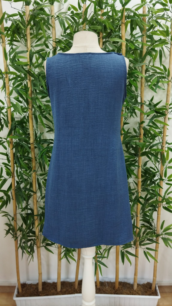 Kadın Kolsuz Kalın Askılı Düğme Detay Cepli Keten Elbise