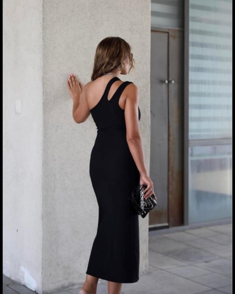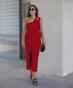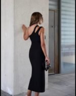 Kadın Kolsuz Tek Omuz Damla Detay JanJan Krep Elbise