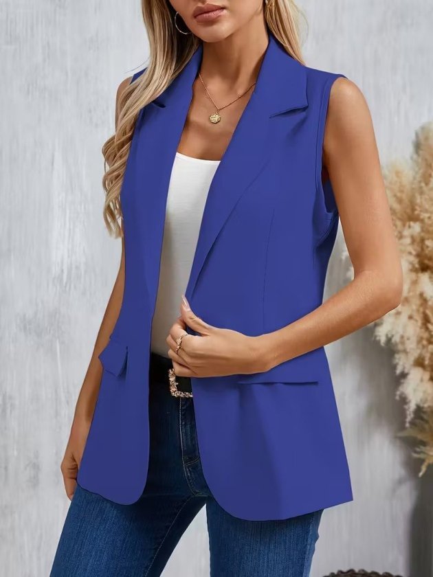 Kadın Kolsuz Yakalı önden Tek Düğmeli Atlas Ceket