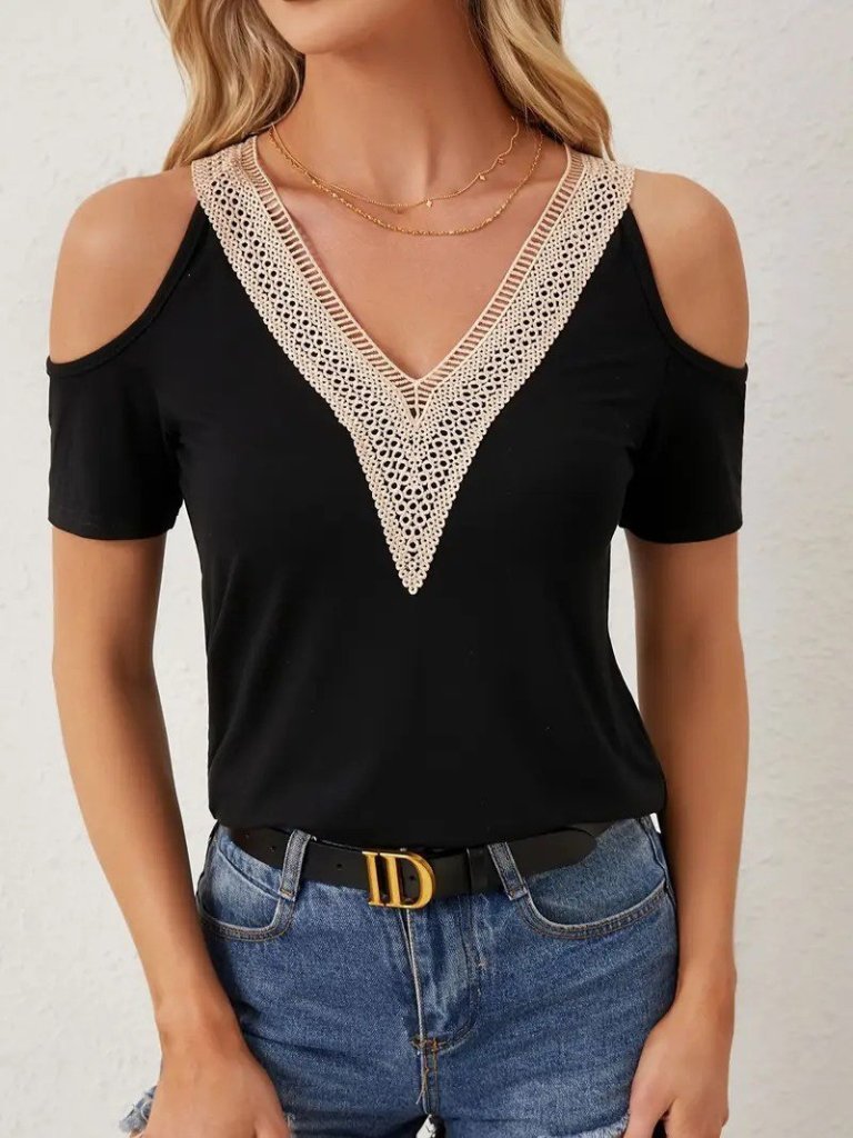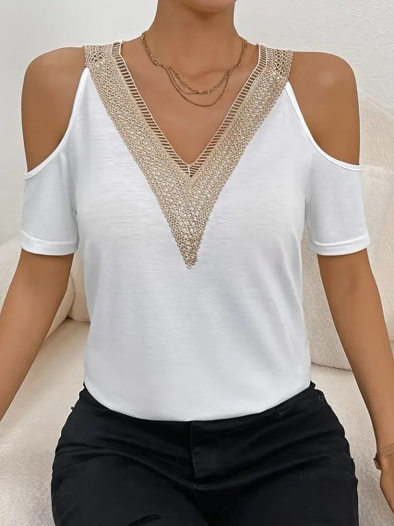 Kadın Omuzlardan Açık V Yakalı Viskon Bluz