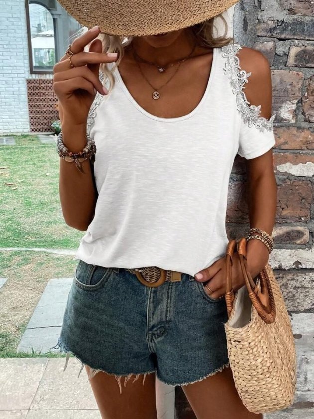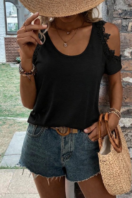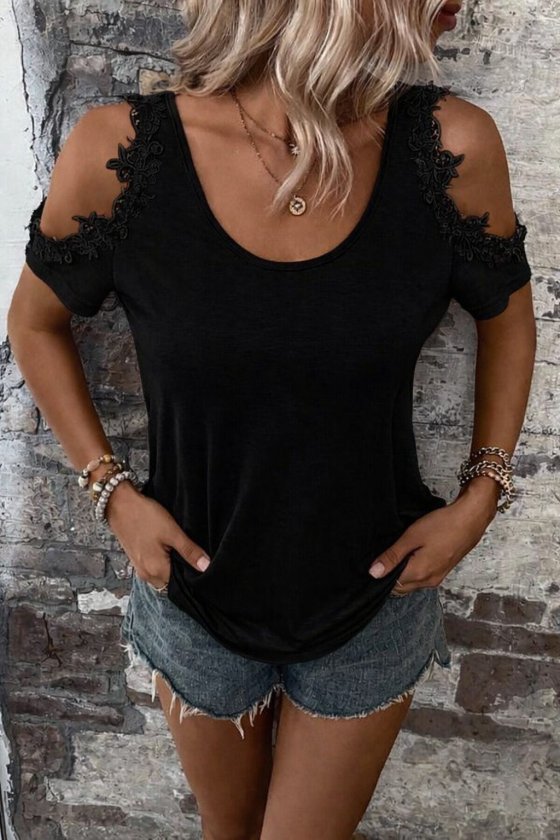 Kadın Omuzlardan Açık Yuvarlak Yakalı Viskon Bluz