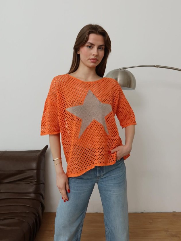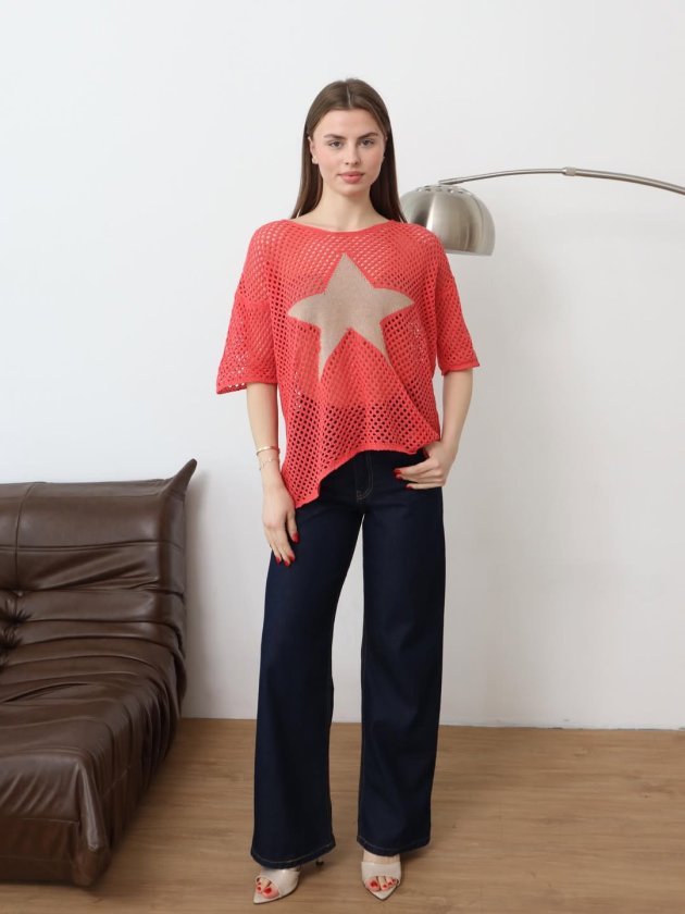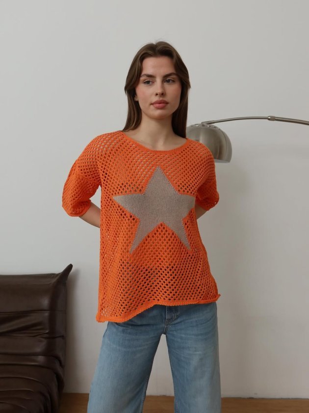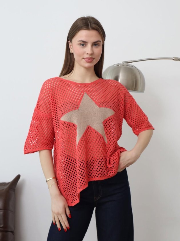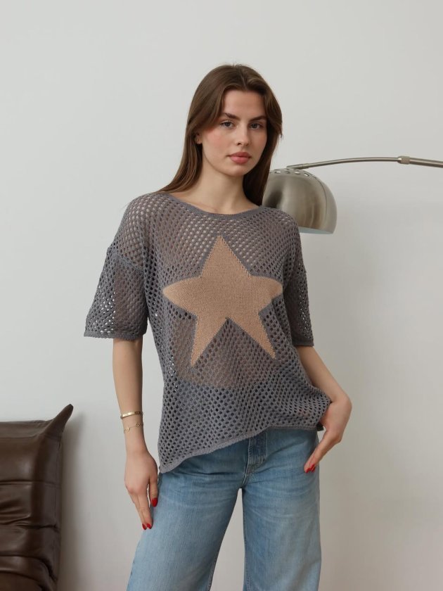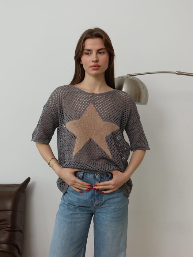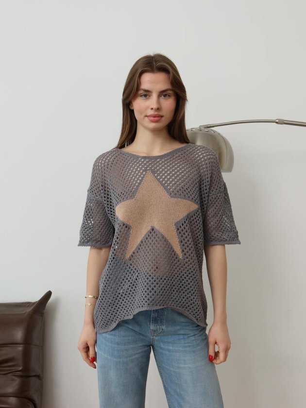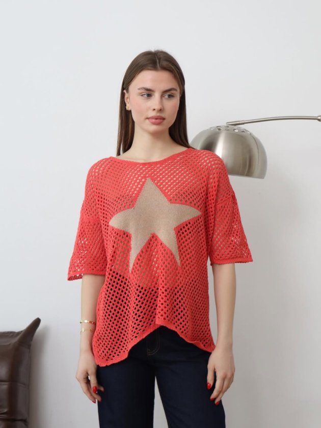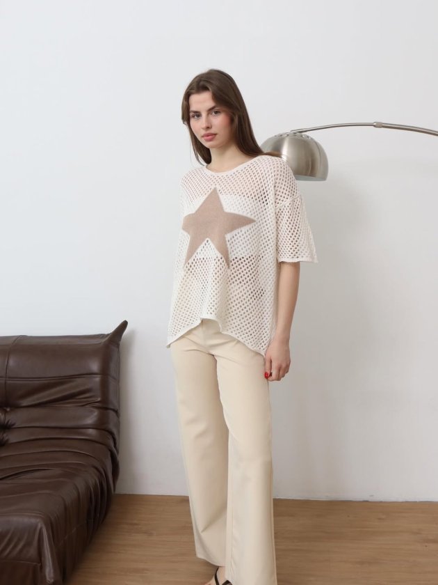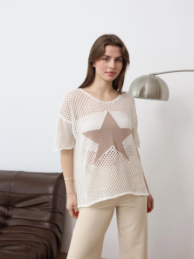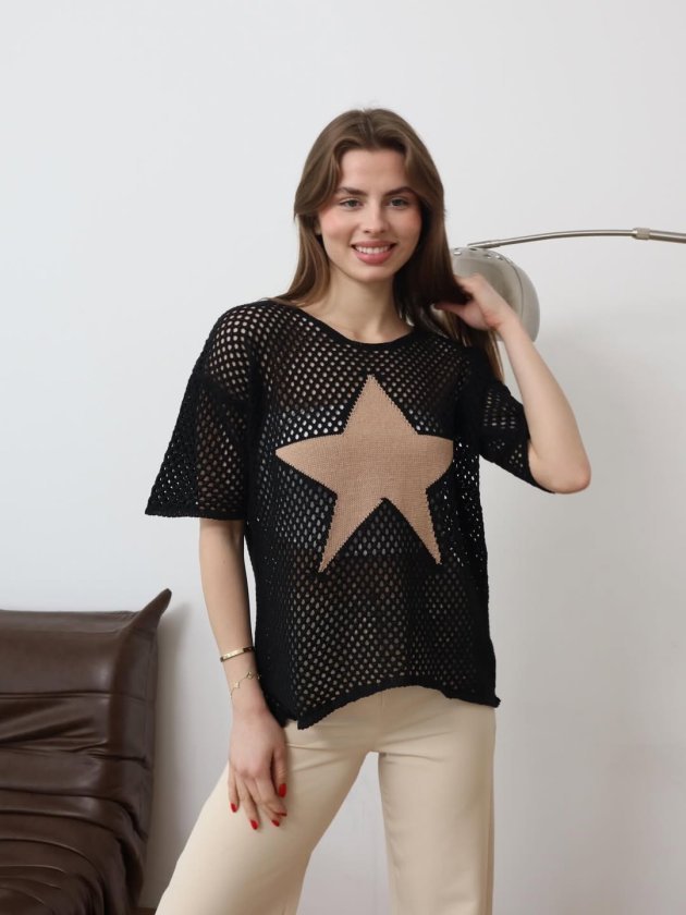 Kadın önü Yıldız Desenli File Triko Bluz