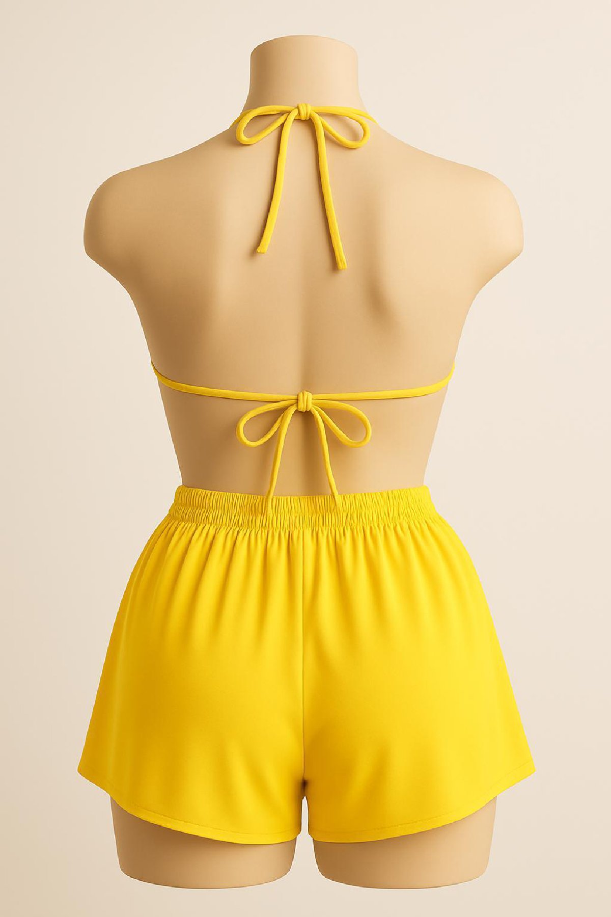 Kadın Sarı Şortlu Belden ve Boyundan Bağlamalı Bikini Takımı